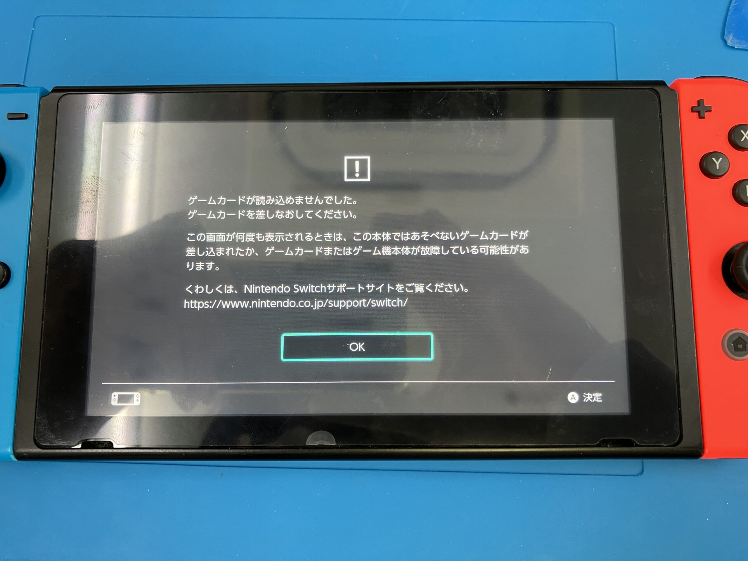 ゲームカードを入れるとこの画面になり、ゲームカードが読み込めないという症状です。